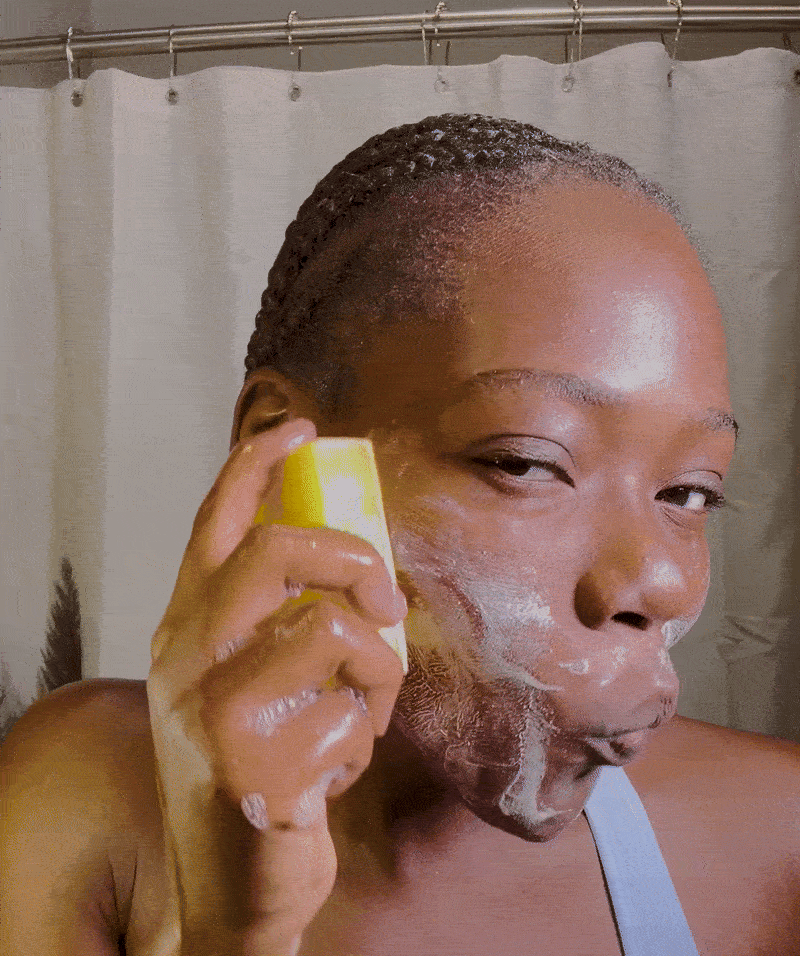 Wet your skin with warm water to open pores and prepare for cleansing.